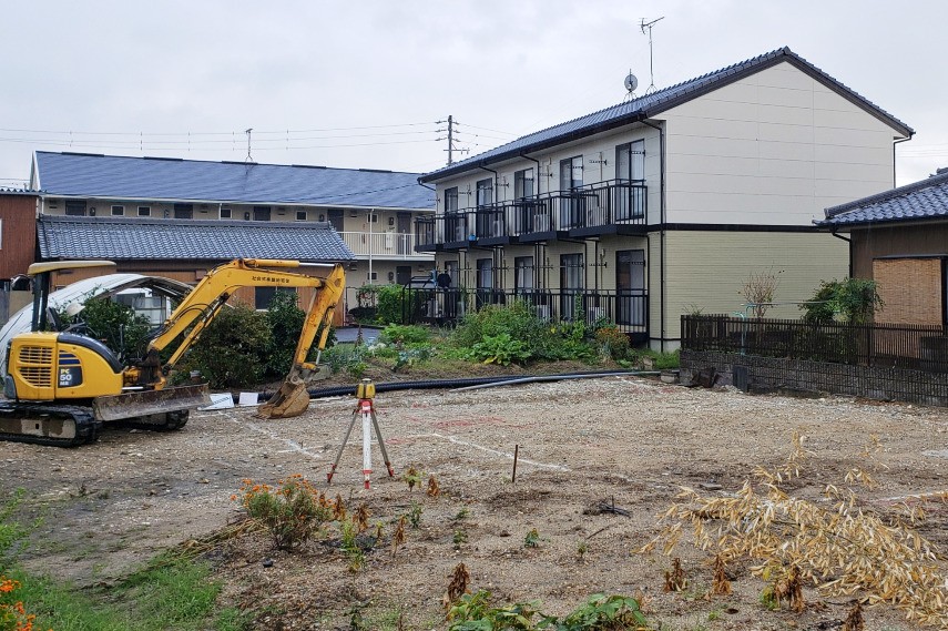 地盤調査スタートです。土地の真ん中や四隅など数か所測定します。