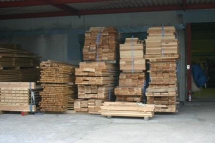 お客様の現場に搬入するまで、木材をここで待機させます。