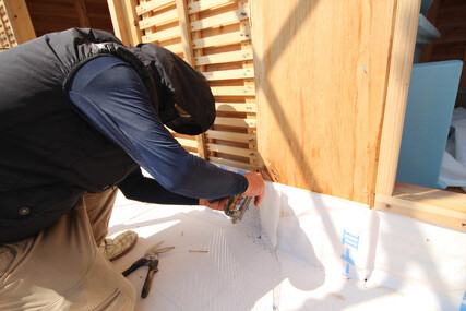 雨水を防ぎ、屋根の隅まで雨水を流し、守る屋根下地材、 アスファルトルーフィングシートの施工も完了!