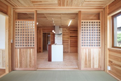 6帖の和室から建具を開けて12帖のダイニングキッチンを見ると広々しています。