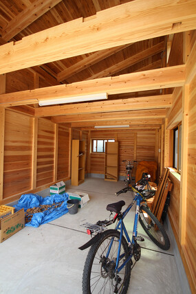 防音室に隣接する倉庫には、力強い印象の存在感のある梁が特徴的です。