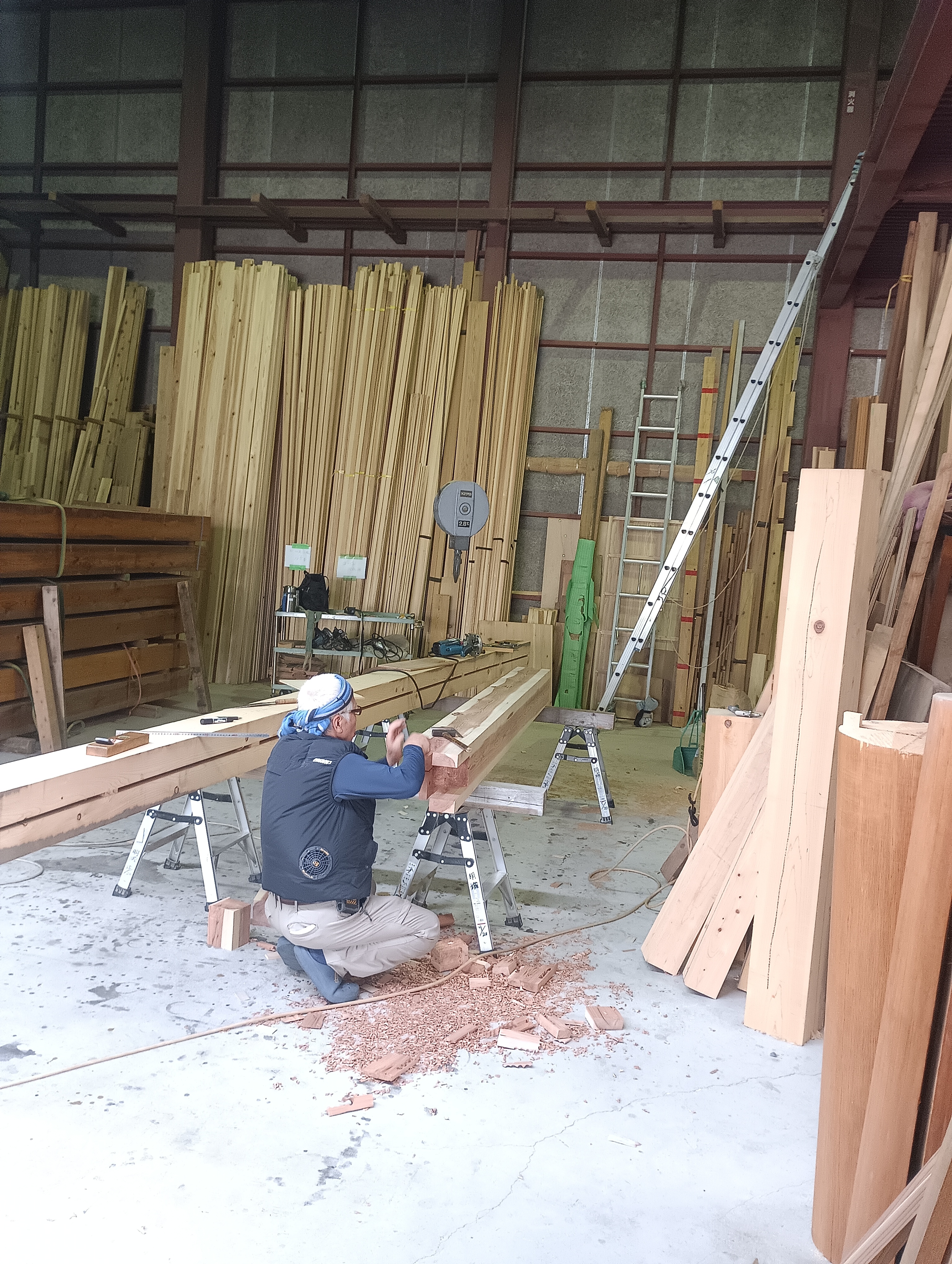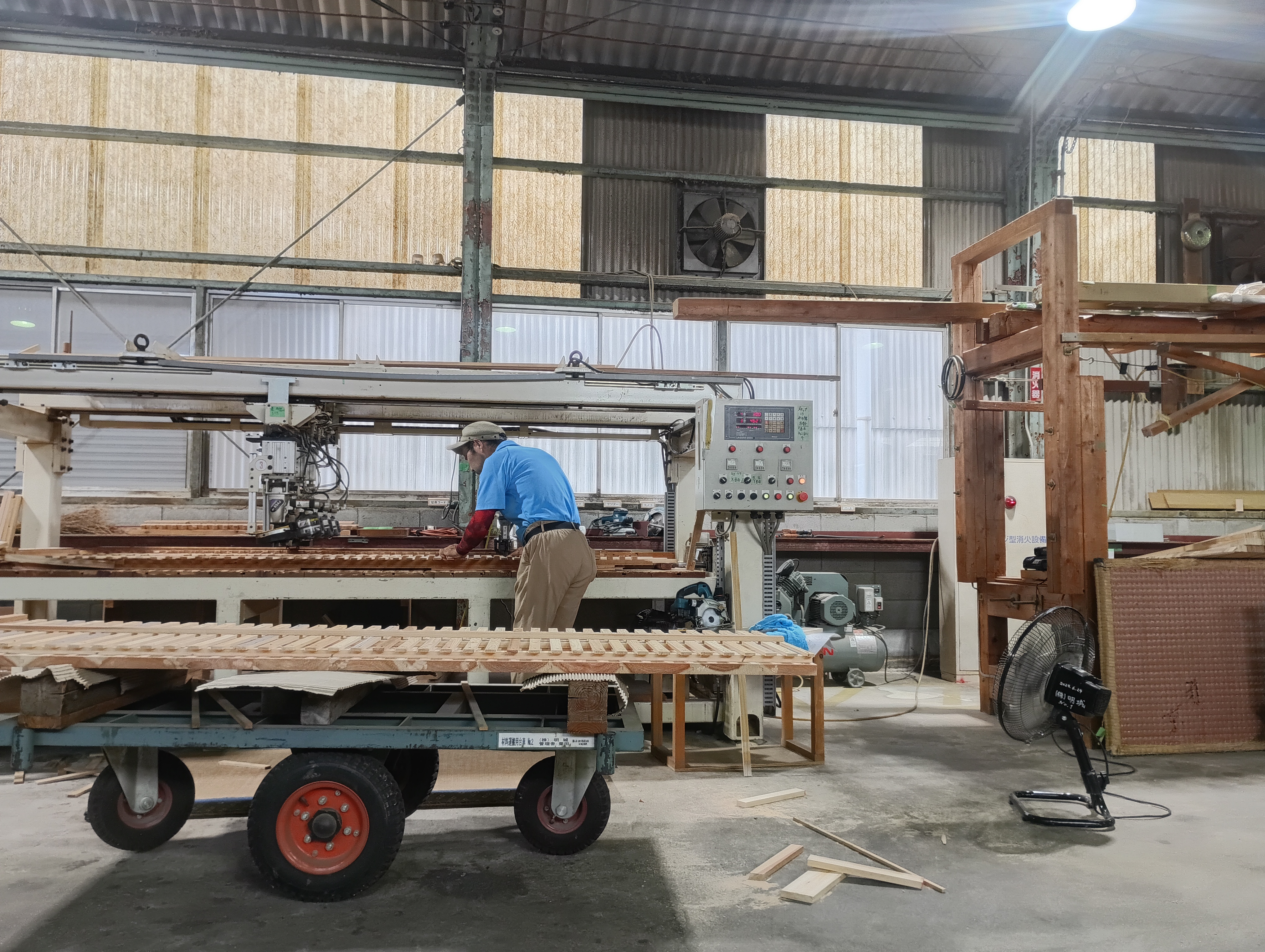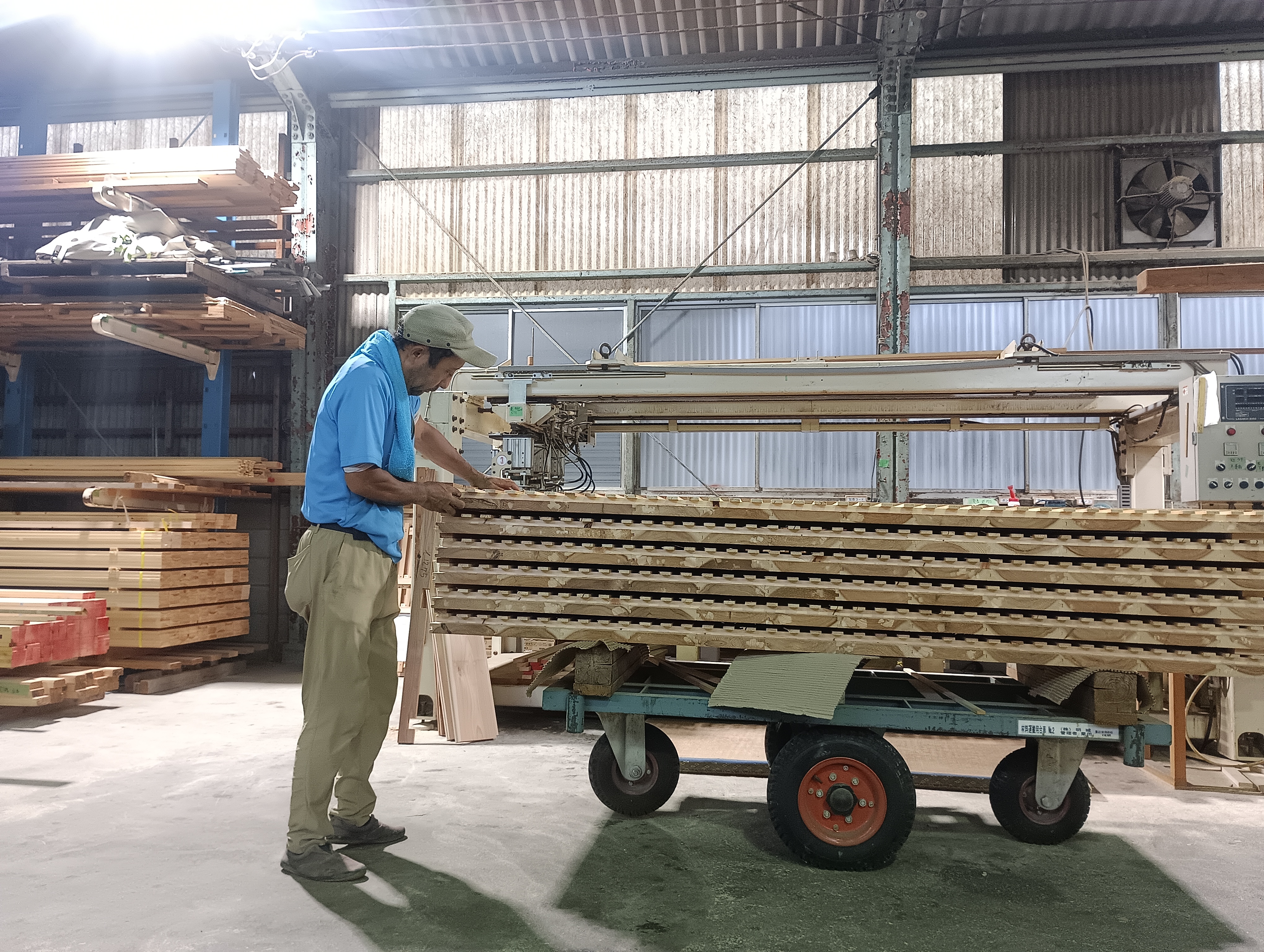 工場にて 家づくりのスタート 当社オリジナル 土壁パネルをつくります 図面に合わせ 正確に 造っていきます 19坪の平屋建てのお家 木の家に住もうぜ! 1000万の家(平屋建てシリーズ)