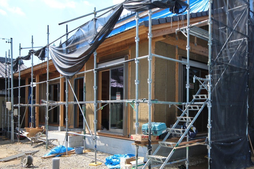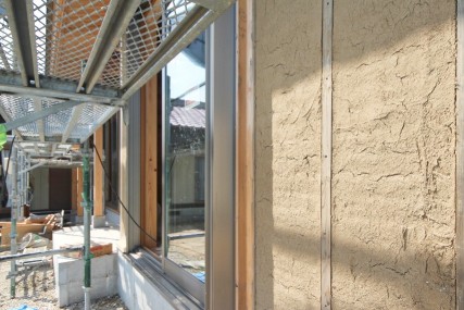 土壁が乾いたら断熱材を貼っていきます。 これから透湿シートや下地と進みます。