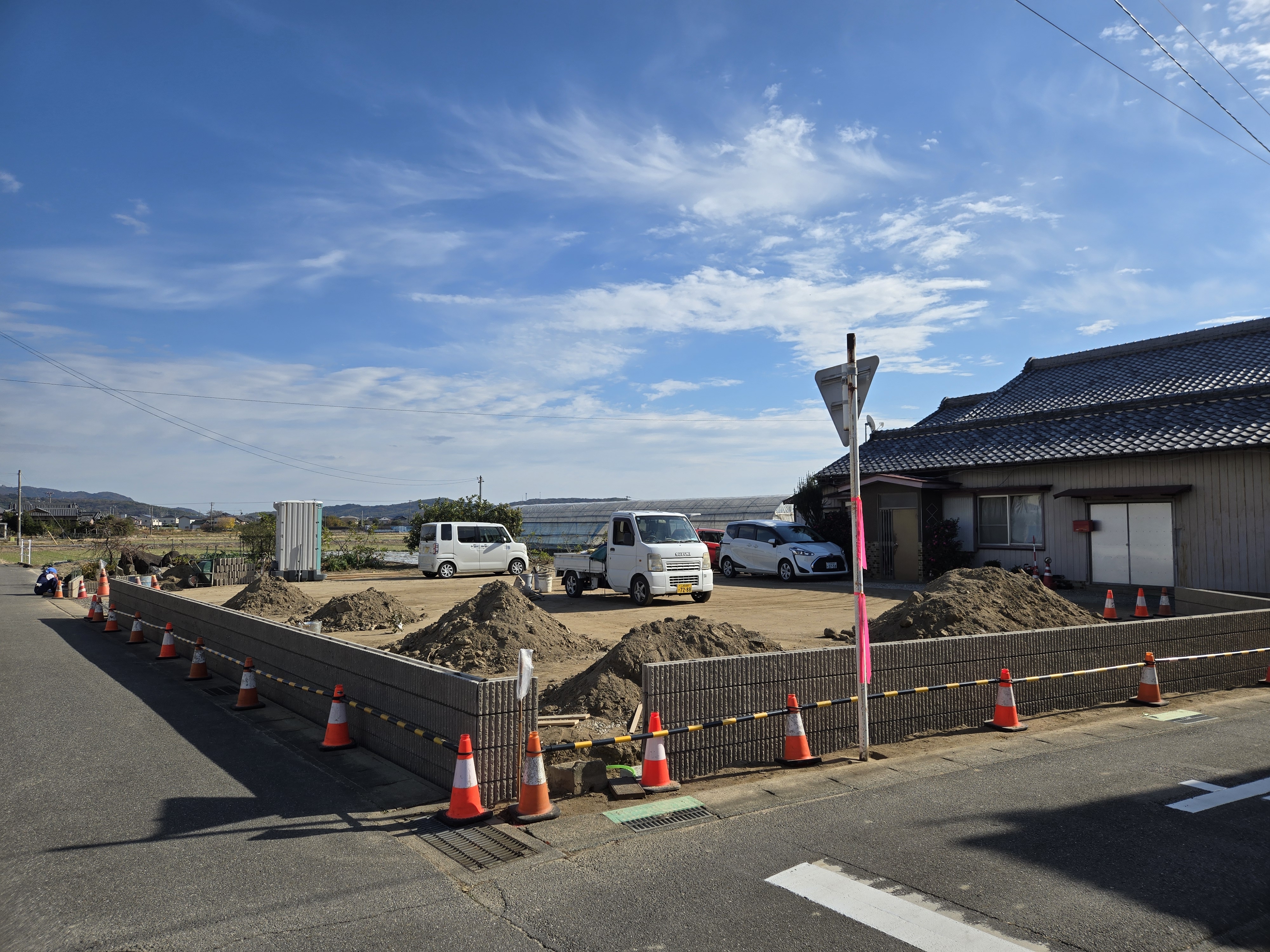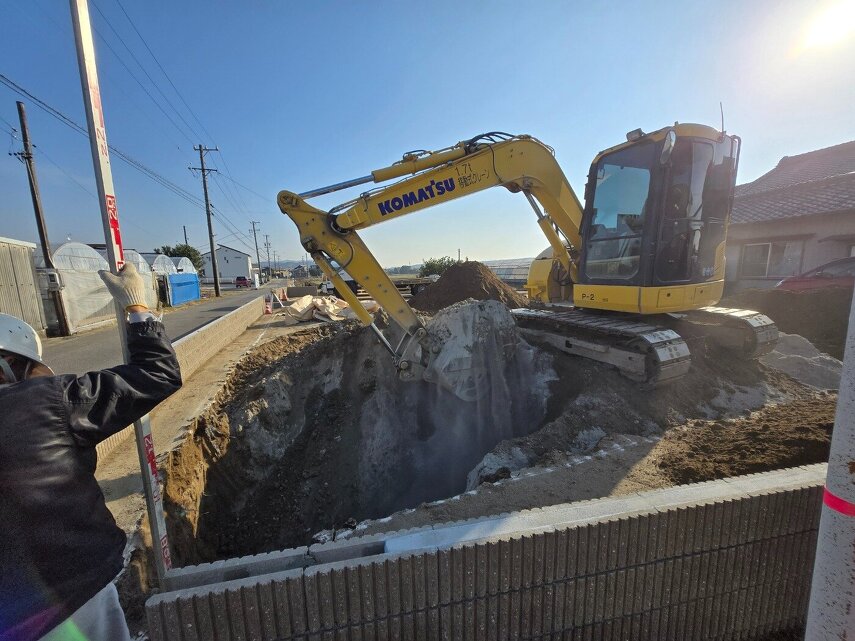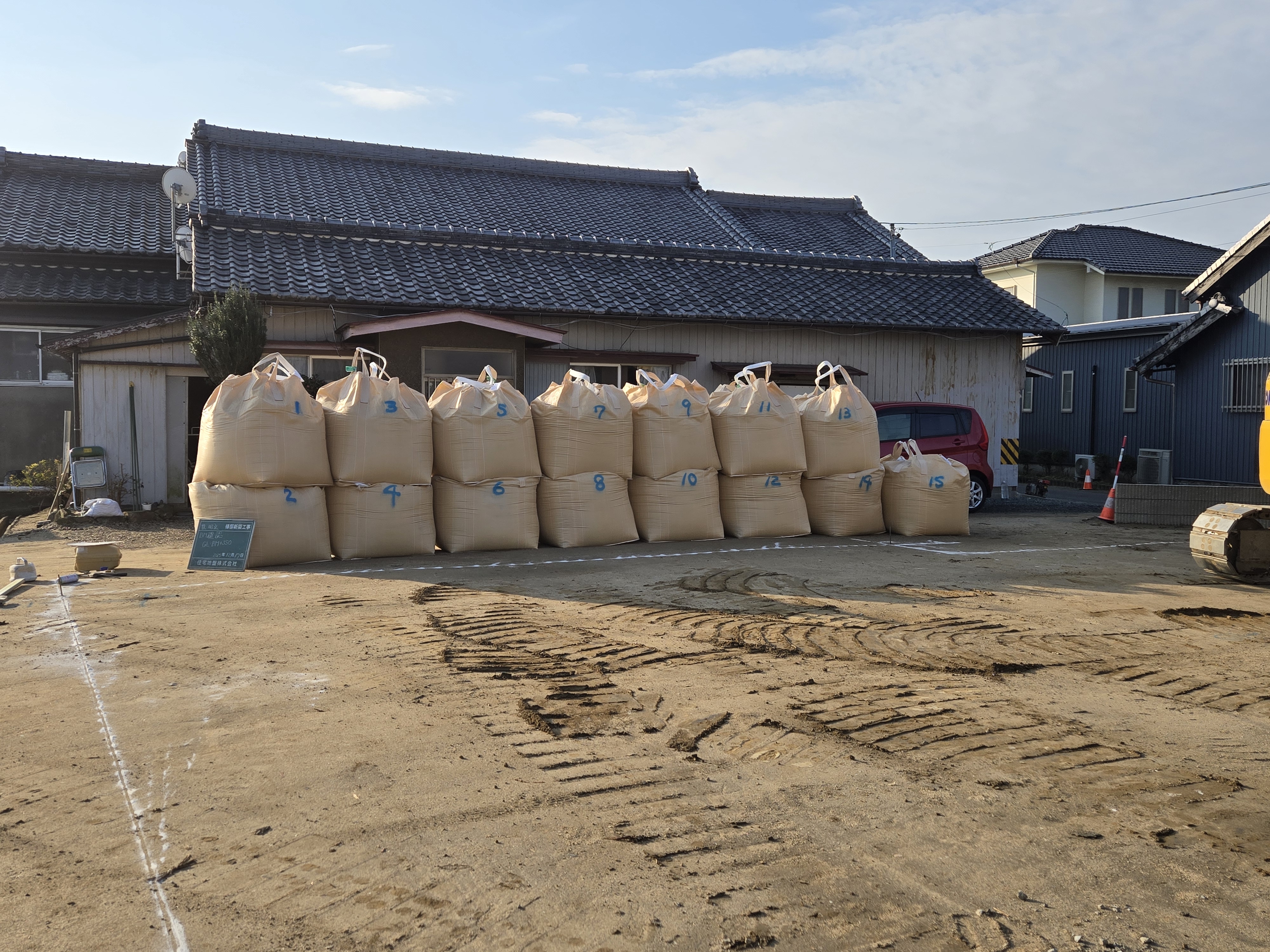 表層改良前に行う、大切な準備のひとつです。