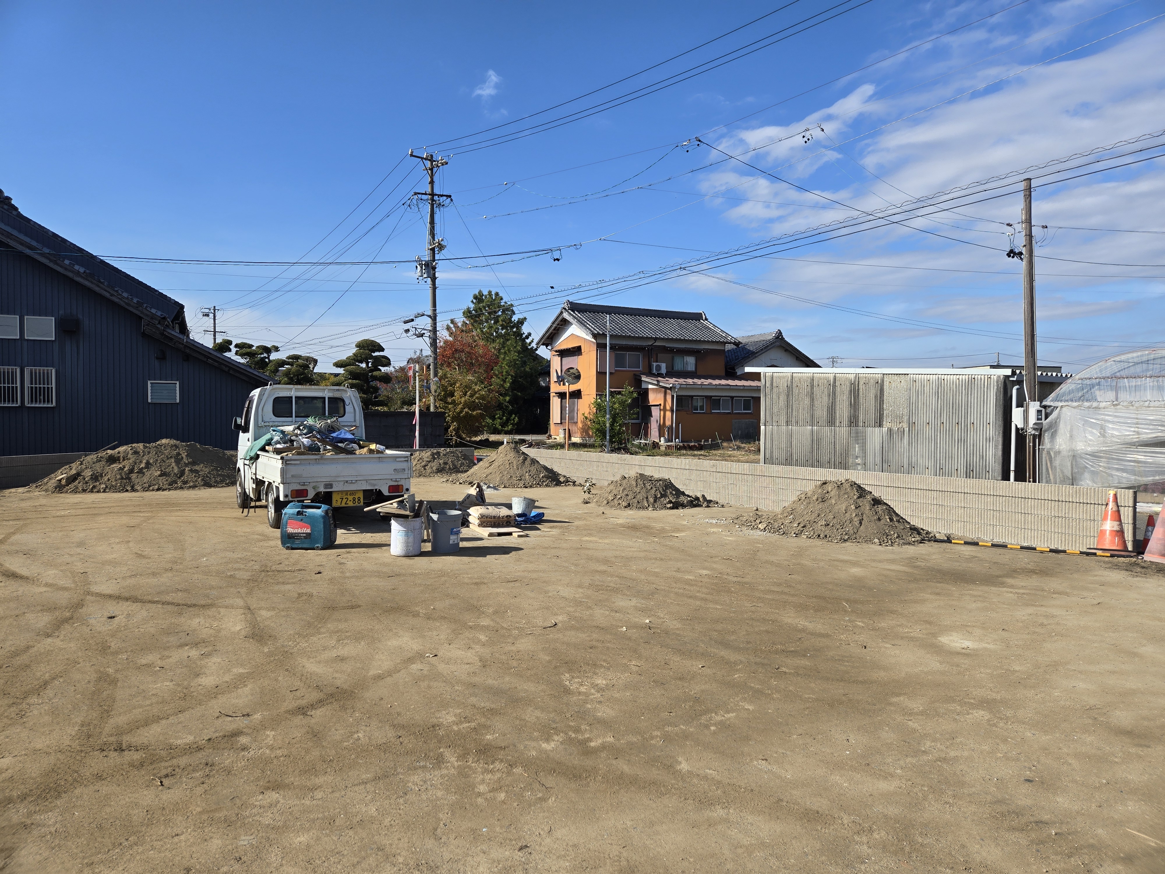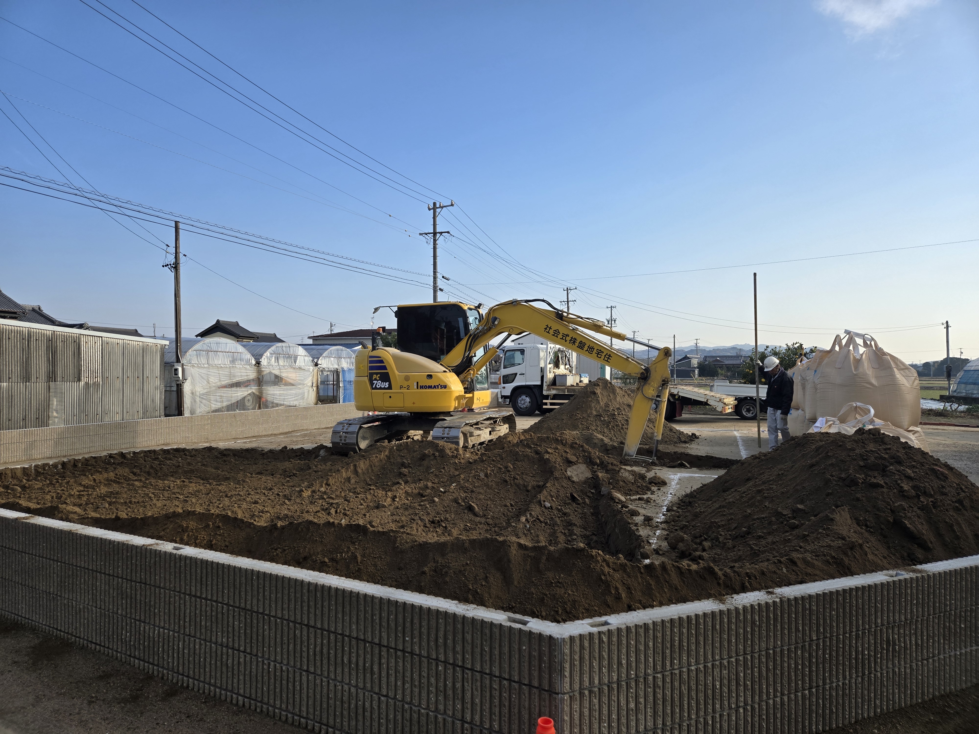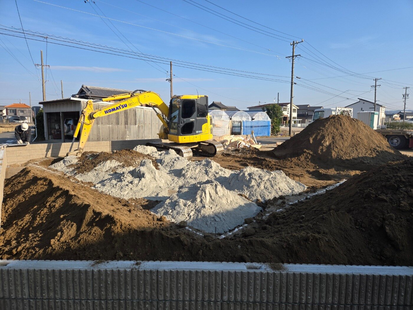 地盤改良工事を行いました。 調査結果をもとに、今回は表層地盤改良工事を採用しています。