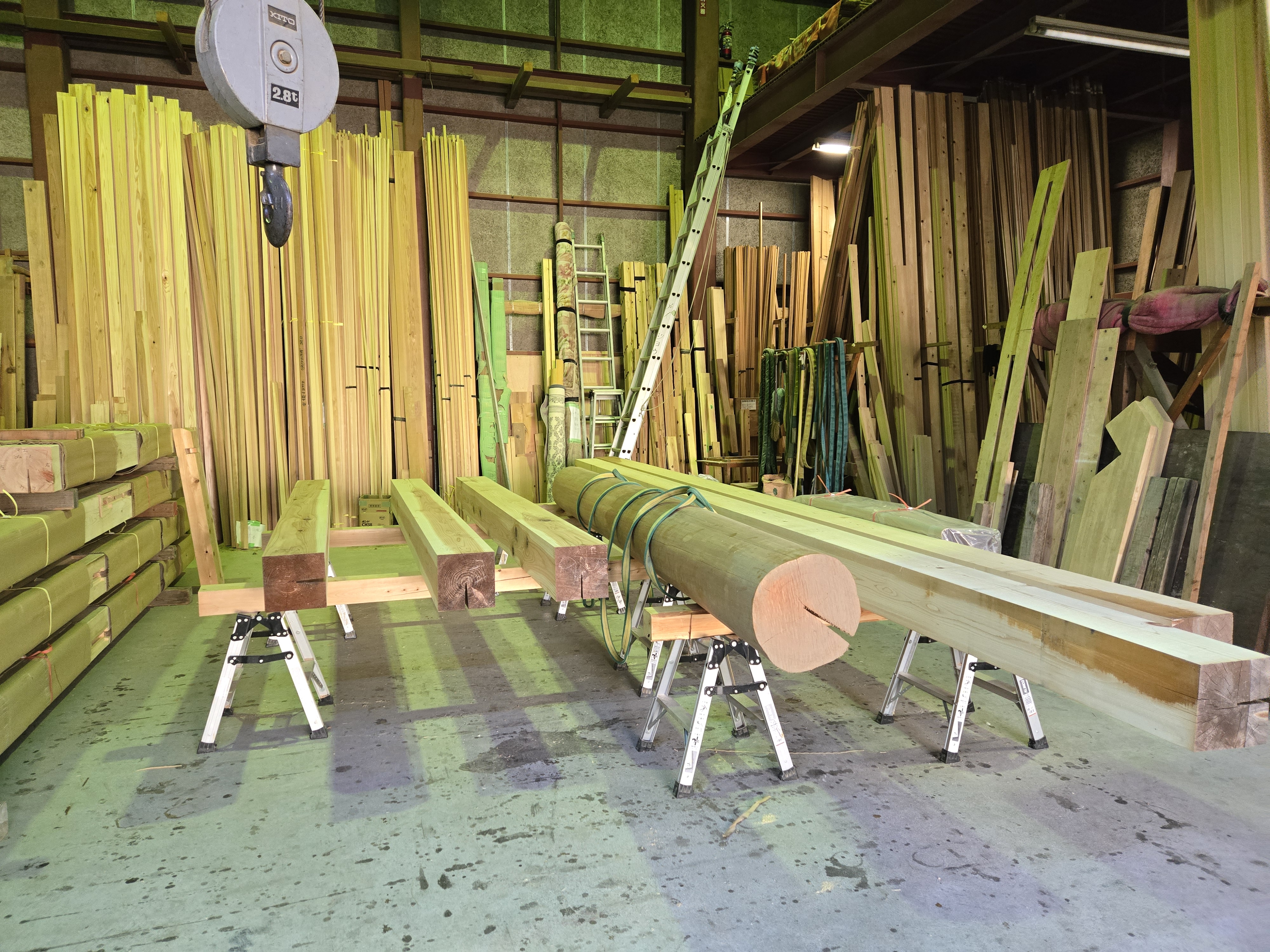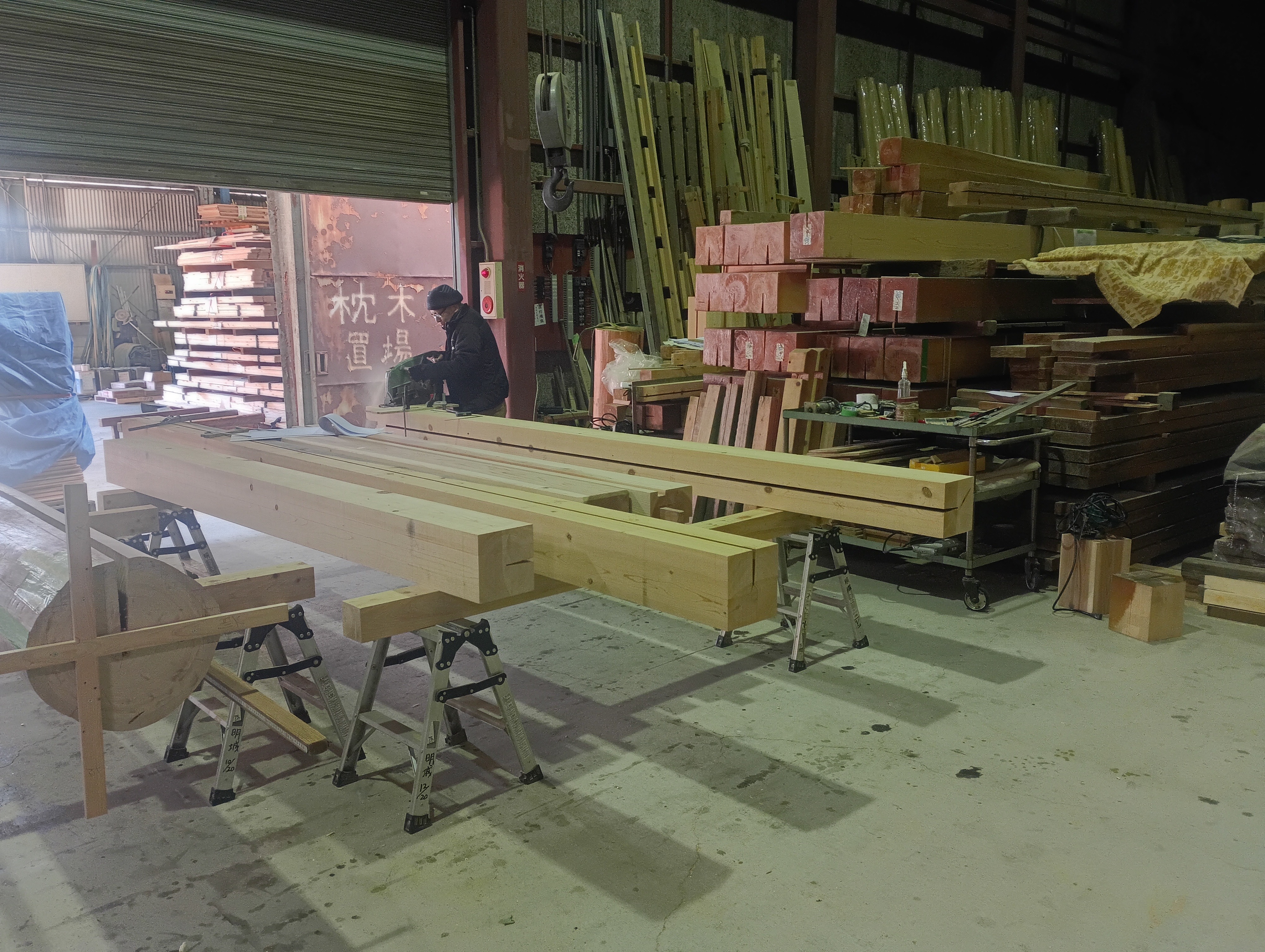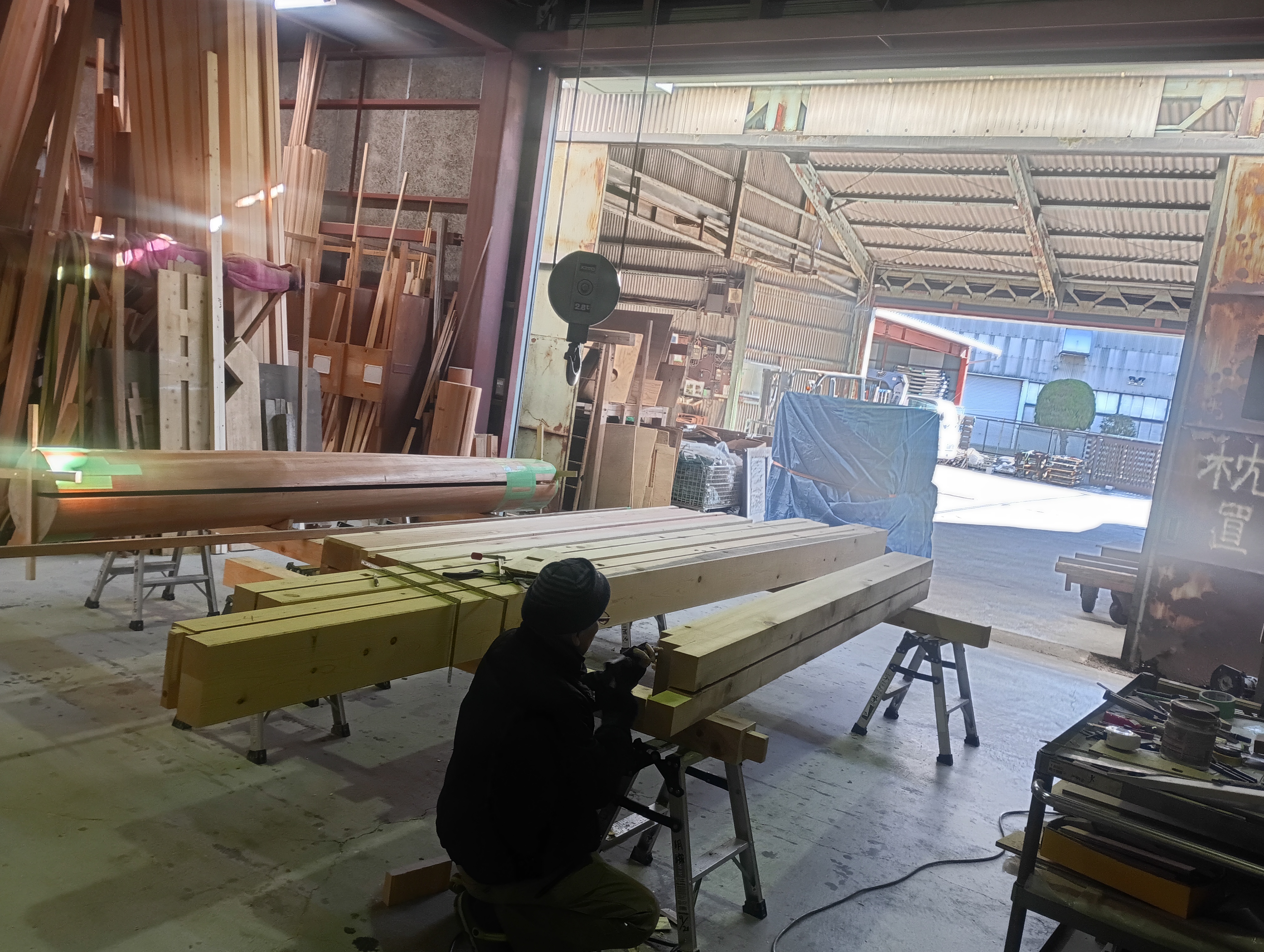 こちらは角柱の加工の様子です。 建物をしっかり支える大切な柱として、丁寧に準備しています。