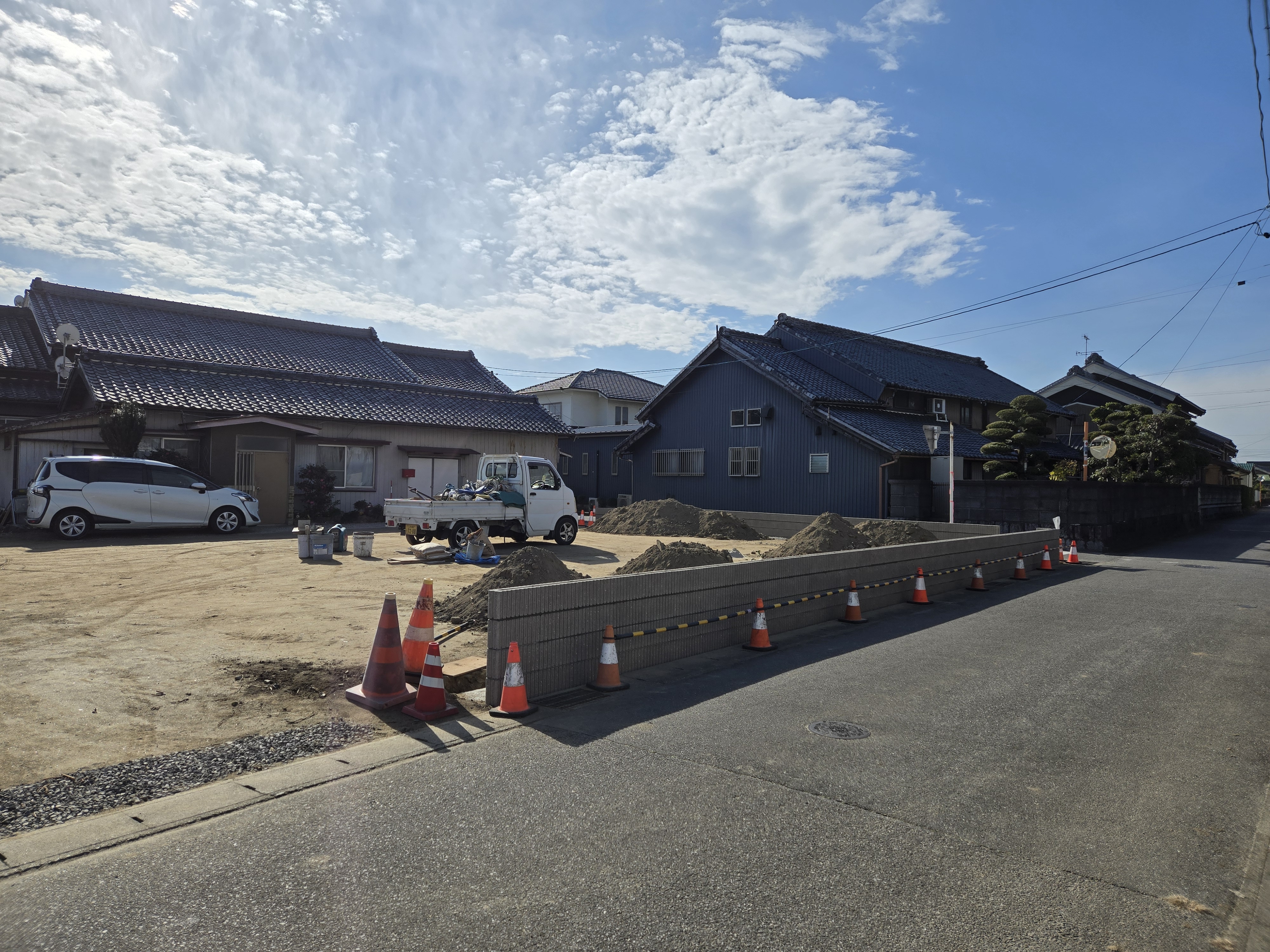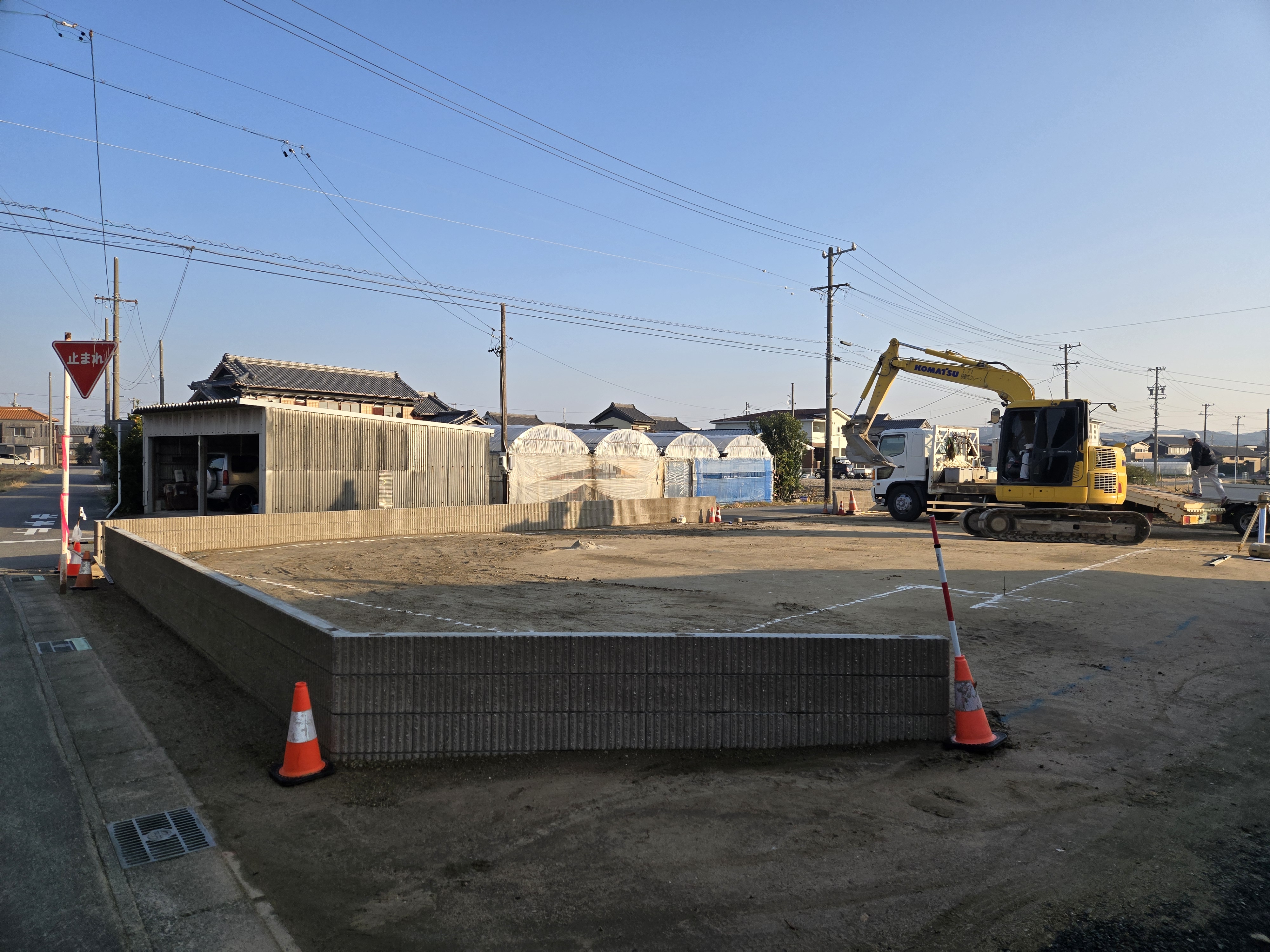 現場では、境界ブロック積みの作業が進んでいます。