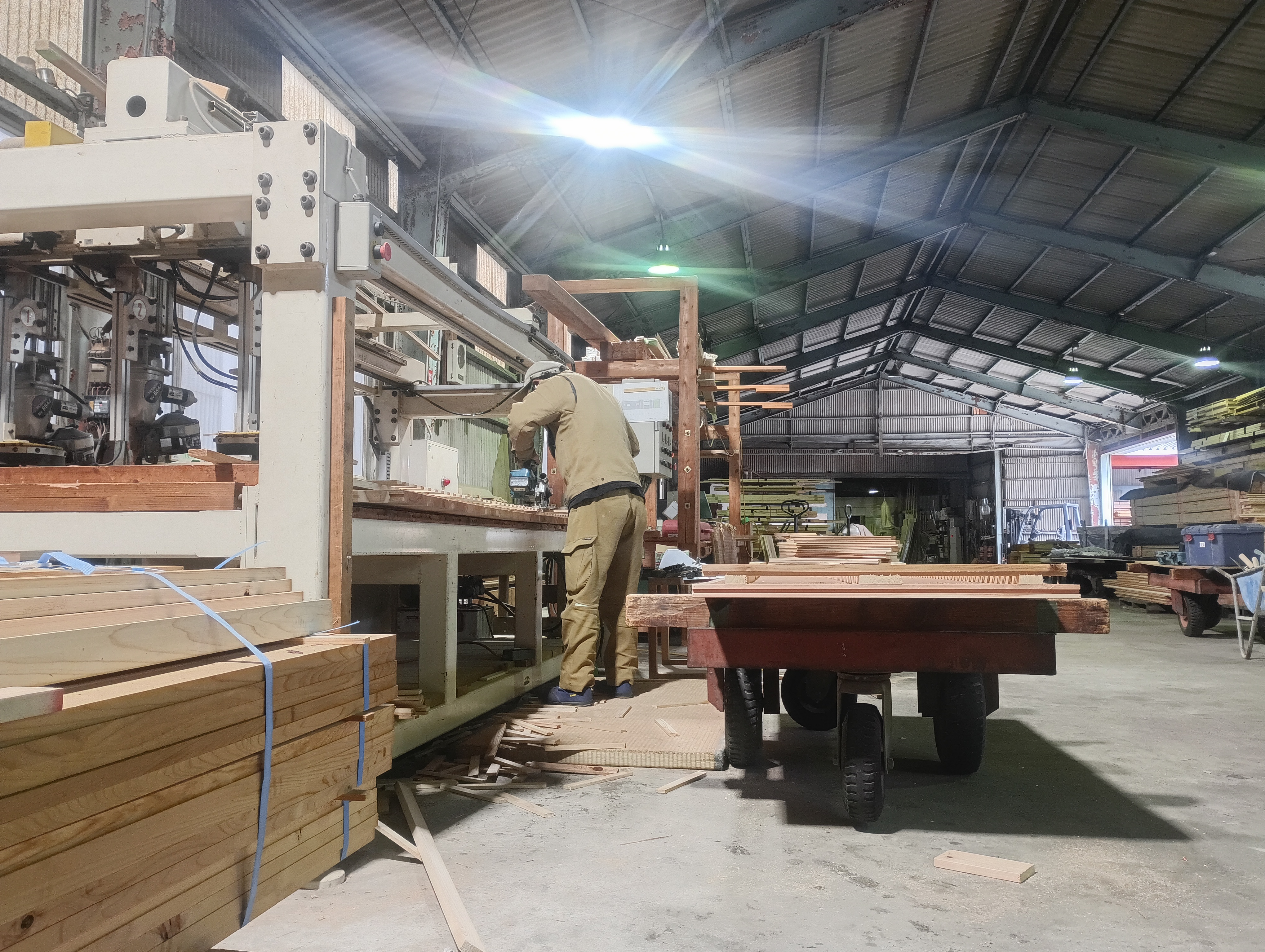 工場では、次の工程に向けて通し柱の加工が進んでいます。 見えないところも丁寧に進めています。