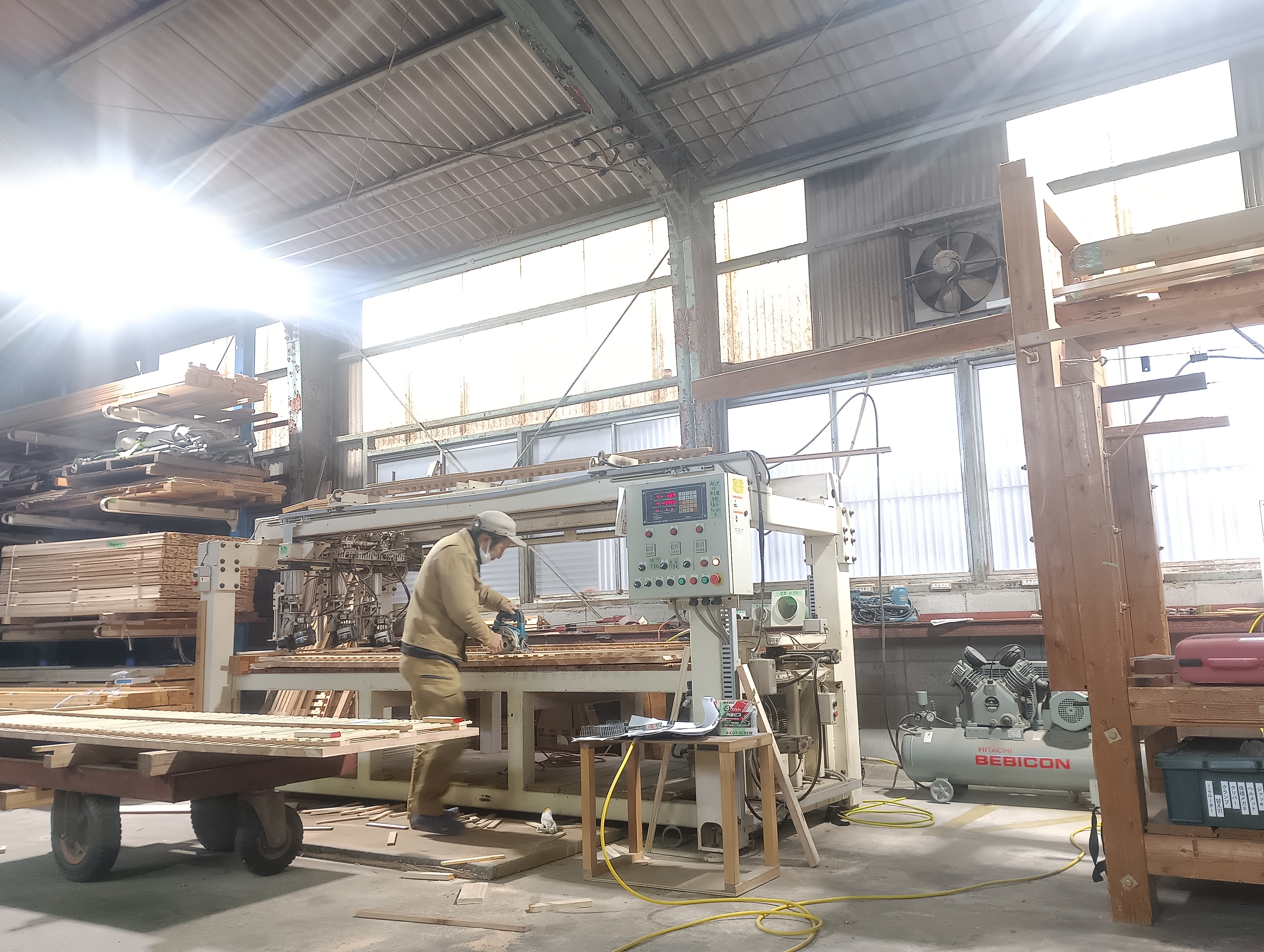 工場では、パネル加工が進んでいます。