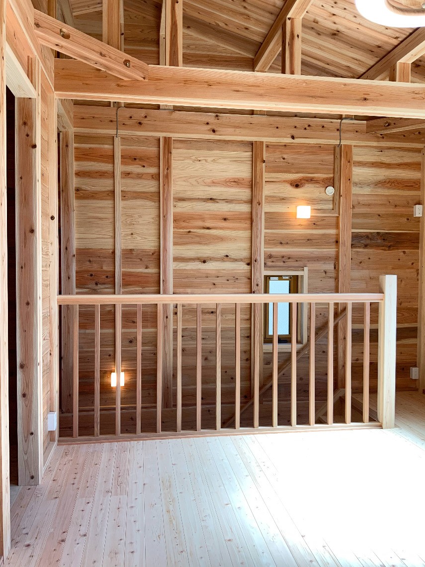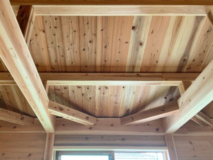 無垢の杉パネルが天井に貼られています。