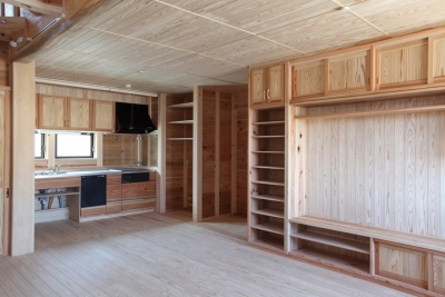 自社特製オリジナル キッチン・TVボード すべて無垢の木を使用しています!!