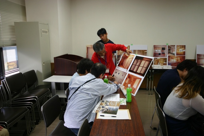 実際に家づくりに使用しようしている材木を展示して解りやすく説明しています。