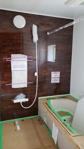 システムバスも設置。 だんだんと生活空間らしくなってきました。 完成が本当に待ちどおしいです!
