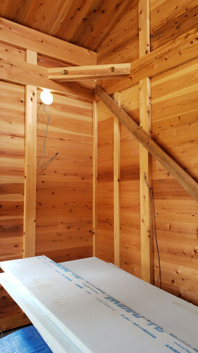 次の日が雨予報のため、雨が当たらないように屋根板の処理をしました!