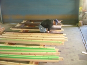 また今回始めてですが古民家風に仕上げる為に工場で柱にベンガラを塗っています、