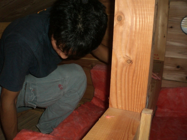 この断熱材は2号棟には取り付けません、一号棟のみ取り付けです、