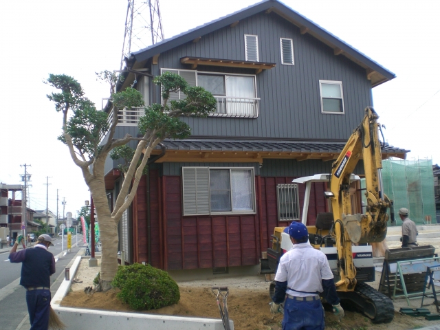 昨年12月建前を実行し今年4月引渡しをさせて貰った佐伯様の新築住宅に刈谷市のS様の庭園内にあったサザンカの老木を移植しました、