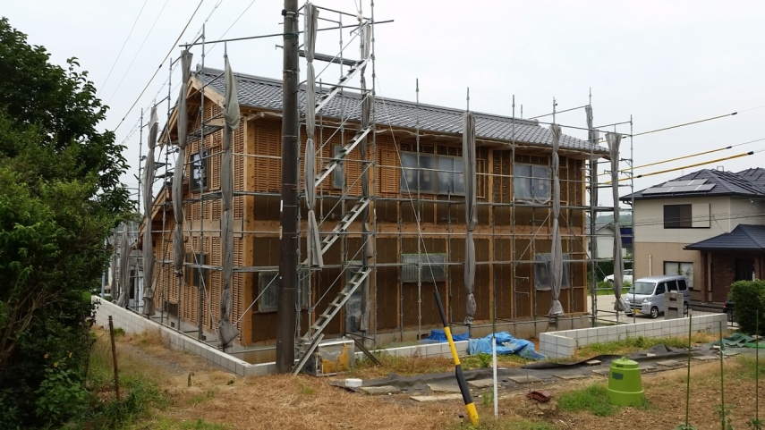 土壁パネルに、ポンプでパネルの中まで入れ込んだ後、コテで前面まで仕上げます。 土壁を付ける住まいは、温度や湿度の室内環境が安定するのが特徴です♪