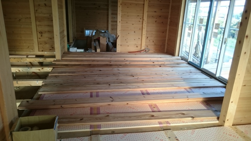 床組、床断熱材入れ、床板貼りが進んでいます。