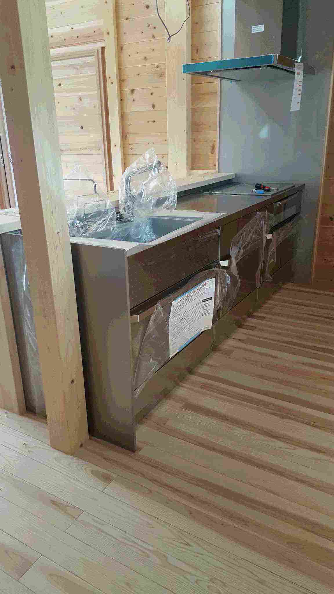 キッチンが組み立てられました! クリナップのSSシリーズを採用。ステンレスで洗練された雰囲気です♪