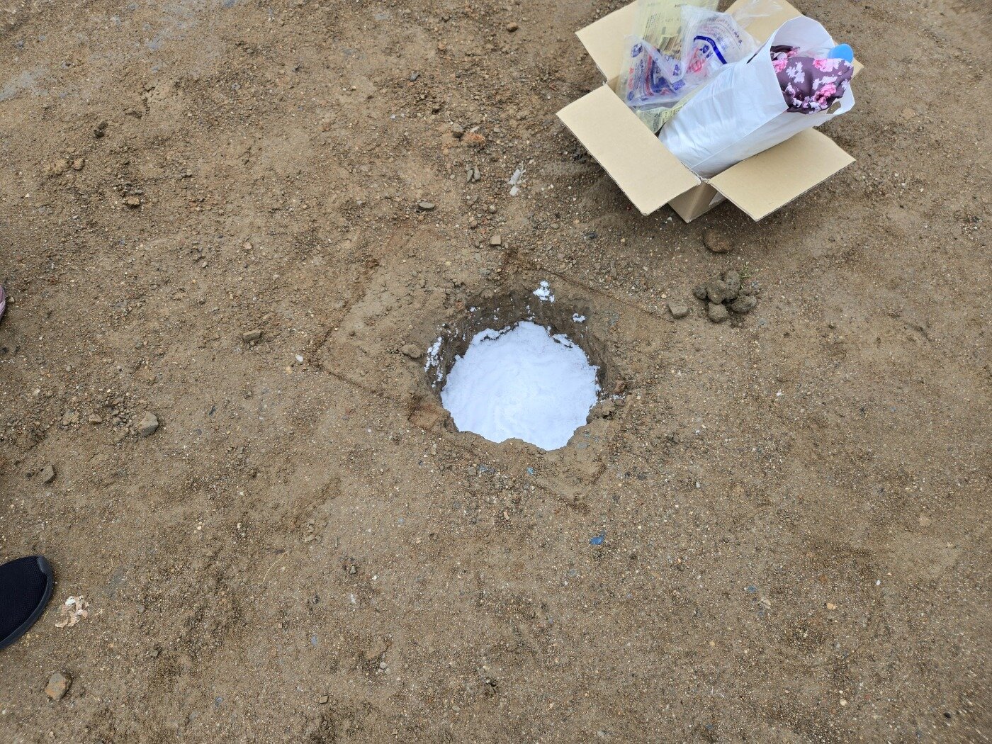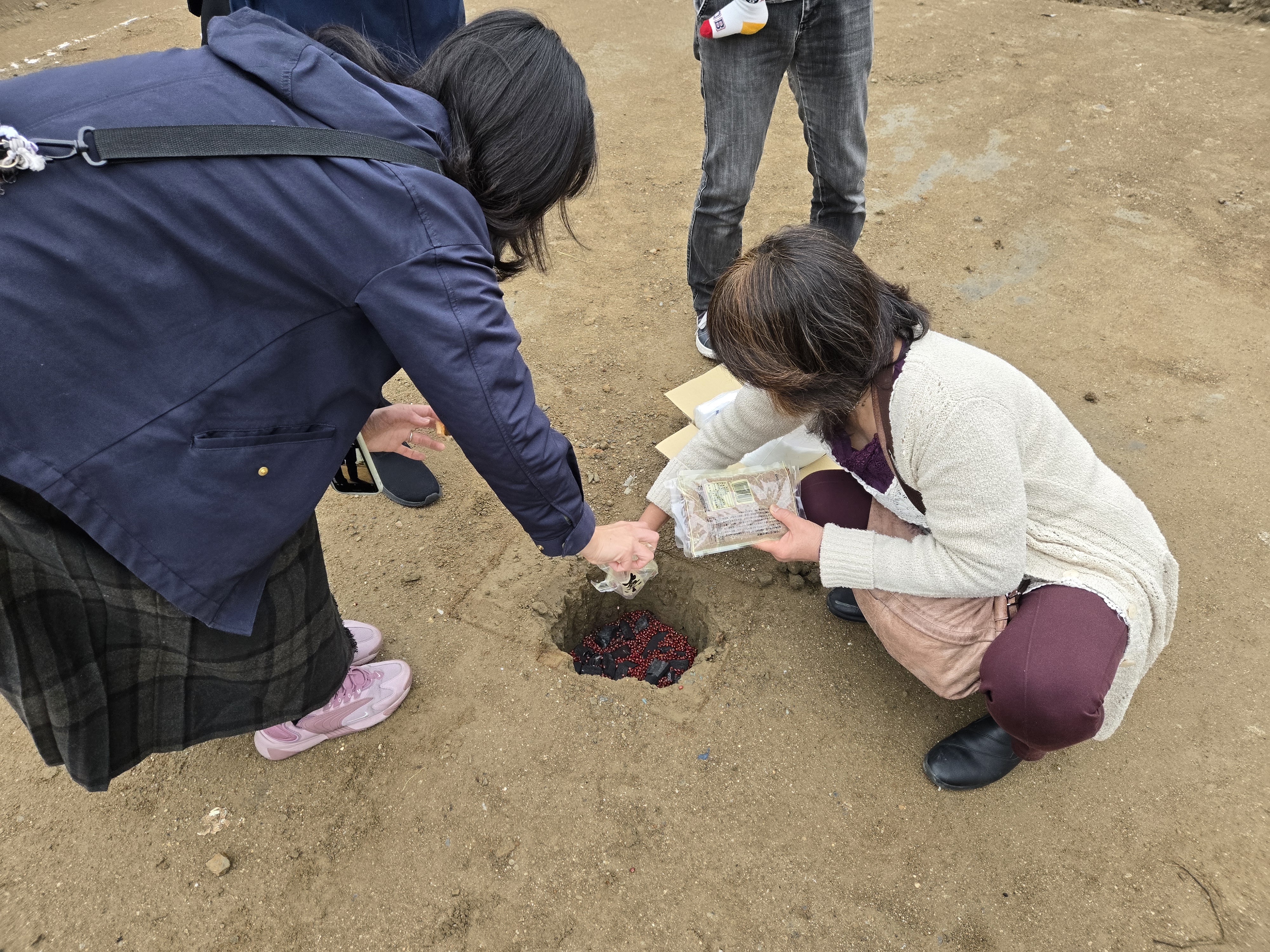 鎮物(しずめもの) 工事の安全を願って鎮めるものですよ 家の中心の位置に埋めるものですよ 土地の神様に対する貢物になりますよ 基礎工事にかかる前に お供えしますよ 基礎工事 スタートです 50坪の2階建てのお家 木の家に住もうぜ!1648万の家(2階建てシリーズ)