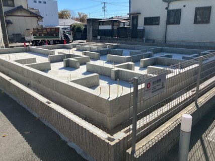 べた基礎です しっかり 建物本体を支える土台となります コンクリートを打ち込んで 乾いたら 基礎工事 完了です 50坪の2階建てのお家 木の家に住もうぜ!1648万の家(2階建てシリーズ)