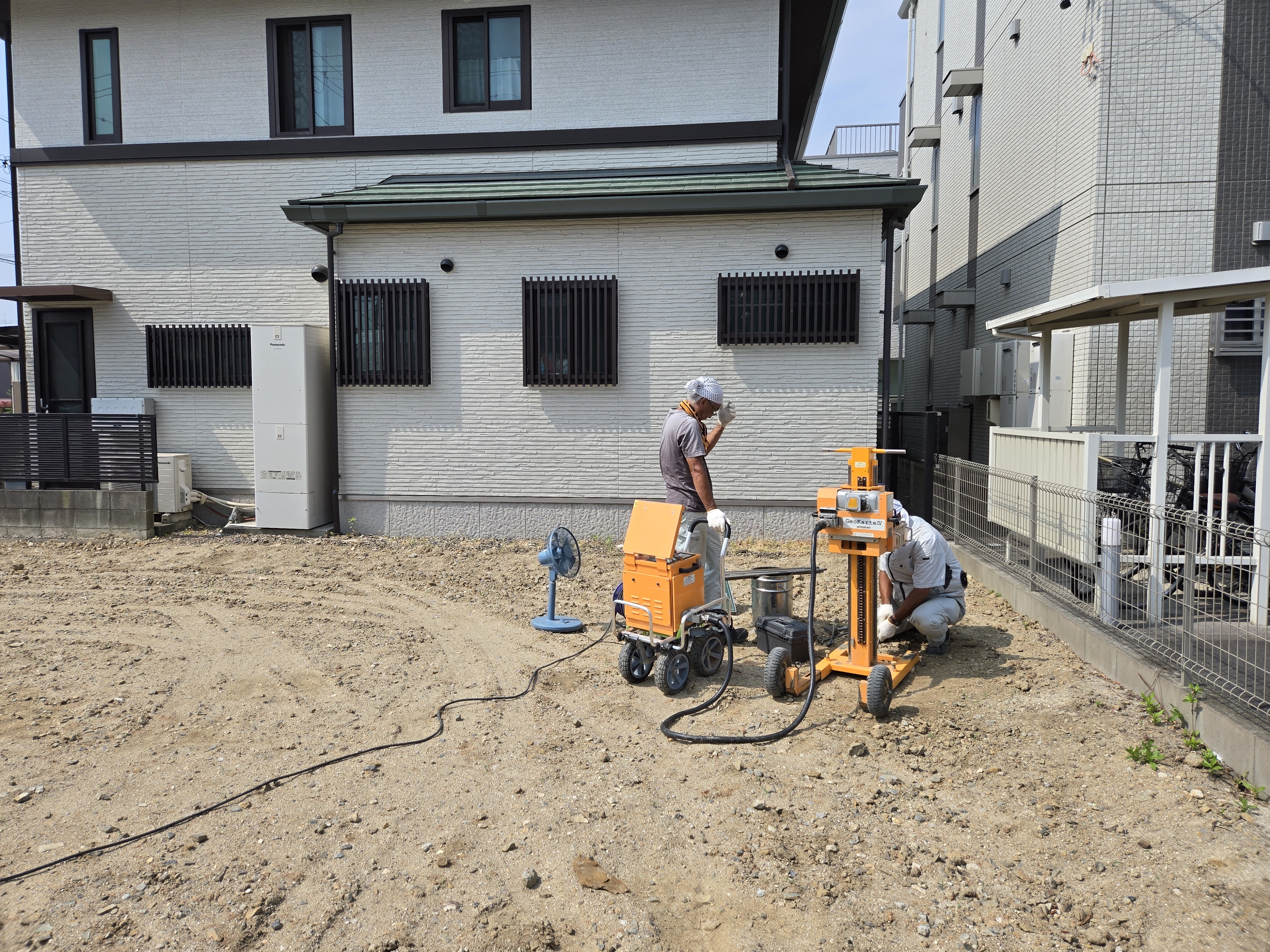 家づくりのスタートは、 地盤の調査から始まります しっかり調査して 的確な地盤補強をします 今回は 軟弱層があるため 表層改良を行います 50坪の2階建てのお家 木の家に住もうぜ!1648万の家(2階建てシリーズ)